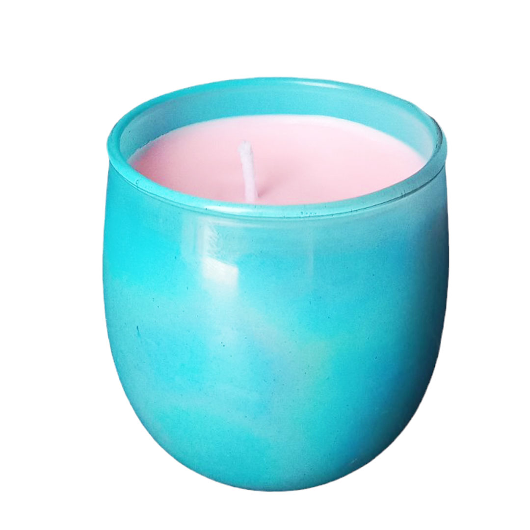 Aura Vibes Soya wax pink Candle U Shape Holographic Votive Sky Blue Jar – 150 g