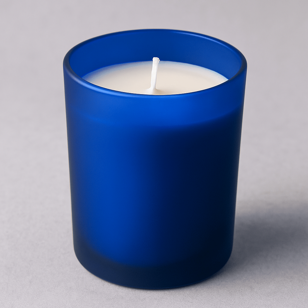 Aura Vibes Soya wax white Candle with Frosted Blue Colored Jar -(200gm/50h)